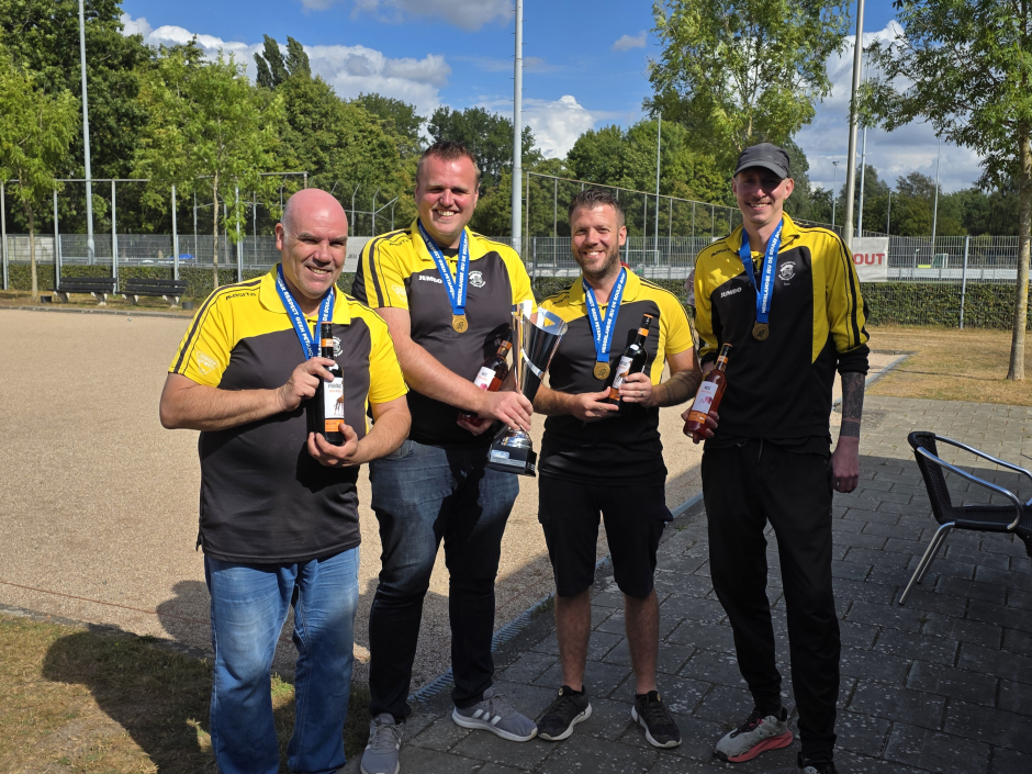 De 4 mannen Paul Geertse, Jeffrey van Rooij, Fons de Krijger en Nick Schuurbiers, met als reserve-invaller Frans Clement, zijn zaterdag 30 augustus kampioen geworden van de 1e klasse.