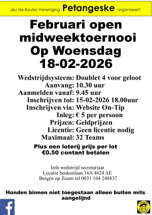 | Inschrijven: | MIDWEEK Toernooi Februari |